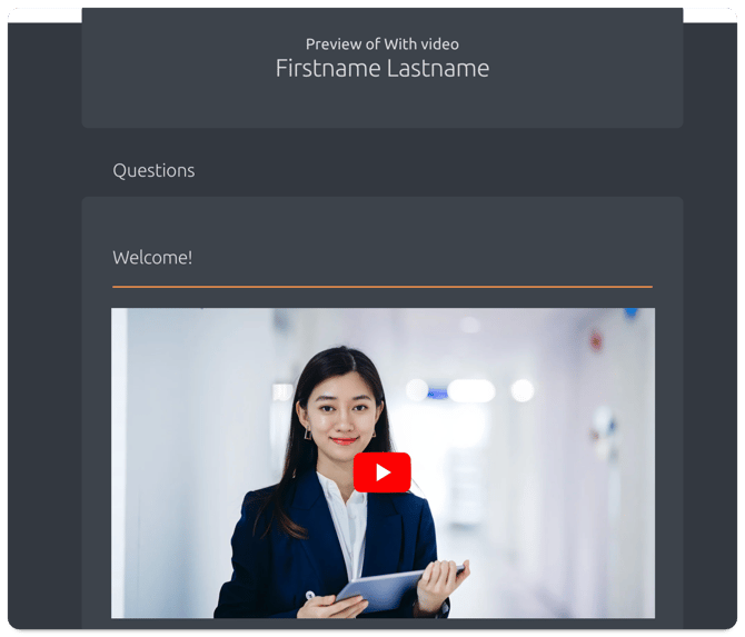 In Refapp, you can add a video as a first greeting to your candidates when they are about to submit their references. This gives you the opportunity to provide additional instructions for the reference checking process – or simply include a personal message.
