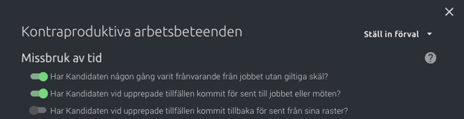 Insights frågeformulär innehåller också en modul för kontraproduktiva arbetsbeteenden, men om ditt formulär inte har ett sådant kan du enkelt lägga till det via pilen bredvid knappen för att skapa egen fråga.